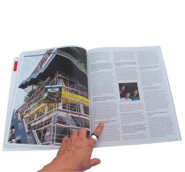 the requirements were to preserve integrity and historical reference, but also to achieve a more contemporary and international relevance for the publication. furthermore, a new grid and typographical treatment were needed for bilingual publication (in german and english). thus, she implemented a new basic layout, generated by new content and structure of the magazine. the resulting design, with strict horizontal / vertical separation of text and images and the variability of white space, became a signature for the modern look of the magazine. the fonts are ‘form frutiger’ in german and concorde in english. lucas de groot reworked the font frutiger designed by adrian frutiger exclusively for the magazine for better legibility.