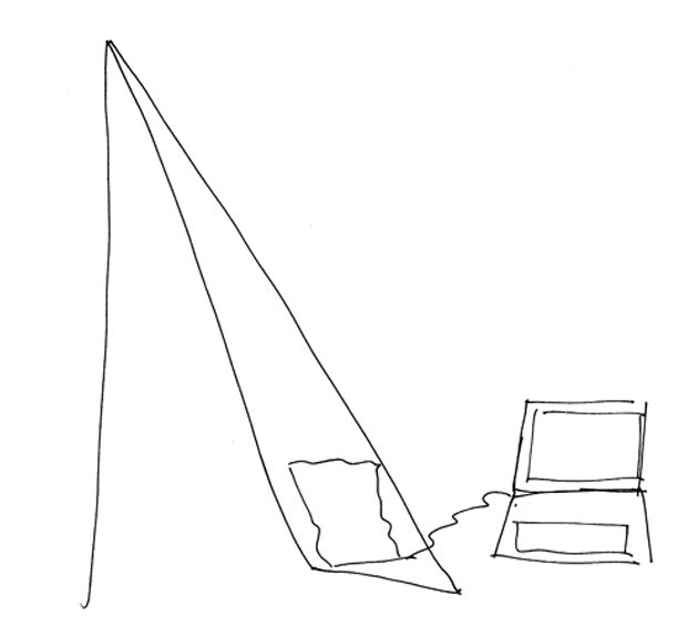 the created imagery printed on the fabric is linked to interior design and provides a notion of life style. It also becomes a three-dimensional object when it is distorted and suspended in space. a poetic and functional sculpture, it responds to existing structures and intervenes with either indoor space or outdoor landscape.
